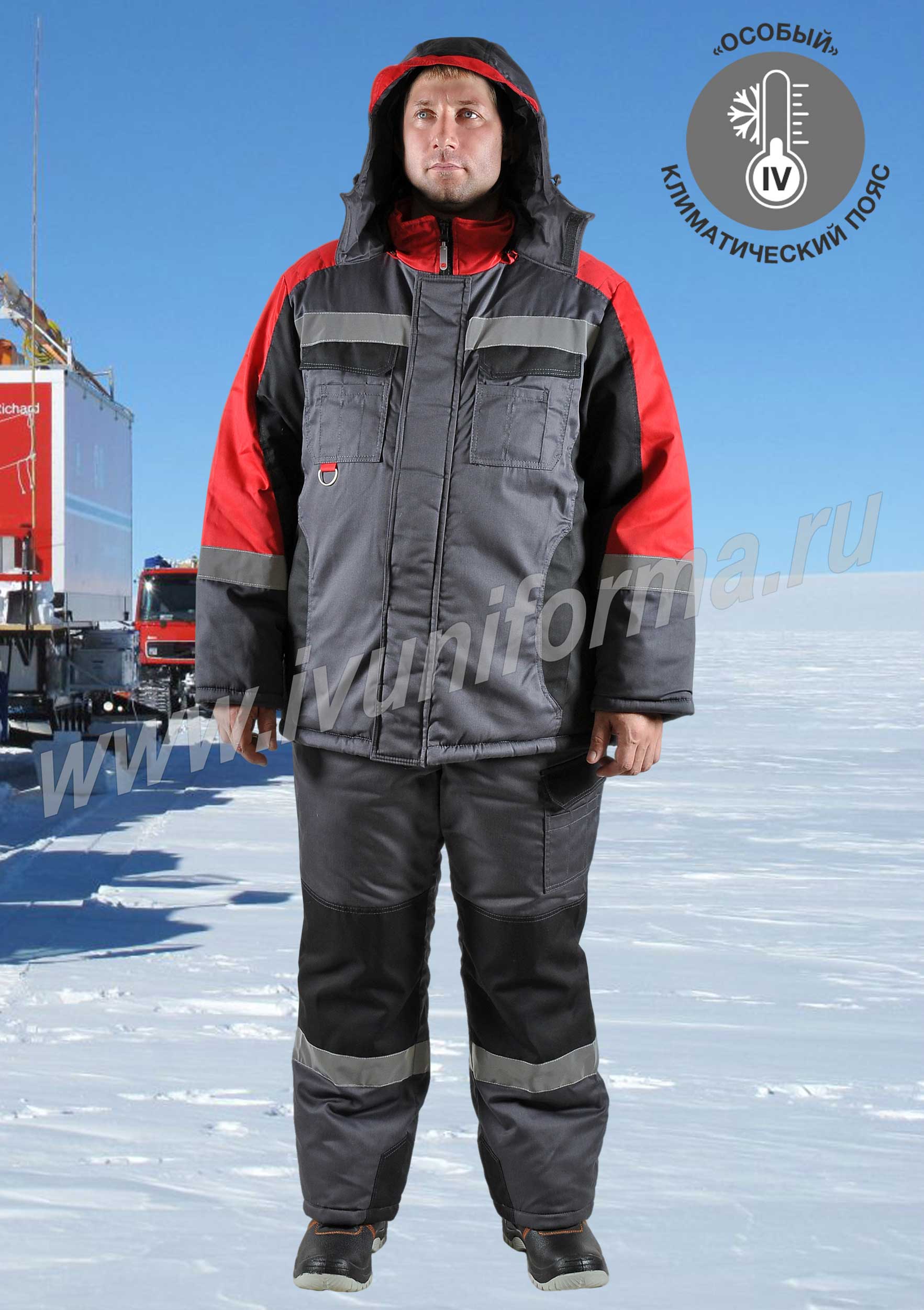 Полотно высокоизвилистое, силиконизированное «Аляска» (плотность -150 гр/кв.м). Куртка: 450 гр/м2 (3 слоя корпус, 2 слоя рукава). Полукомбинезон: 300 гр/м2 (2 слоя)